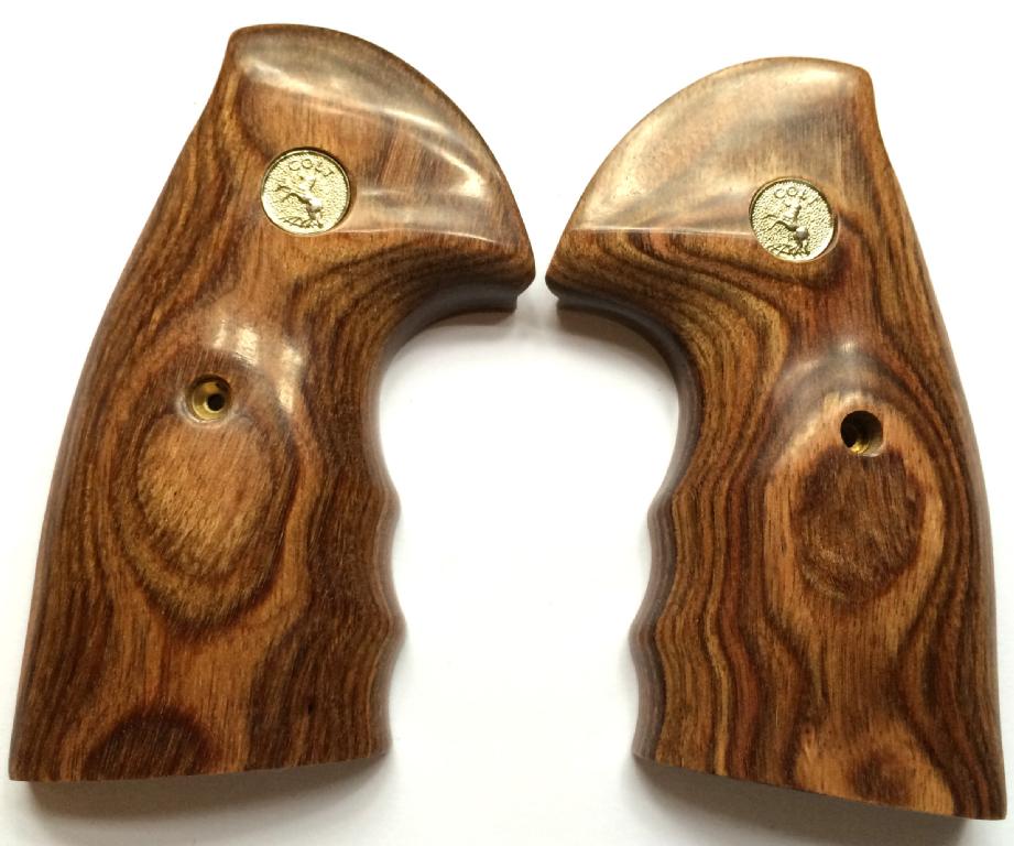 Colt Python Walnut Dymondwood Grips.Oversized with Finger Grooves.With Gold medallions.Held together on the inside with two stock pins.With gold colt medallions.