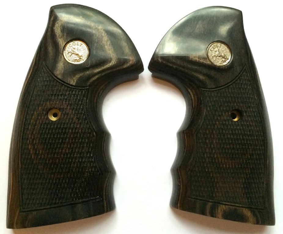 Colt Python Silverblack Dymondwood Grips.Cut Checkered.With Silver Medallions.Held together on the inside with two stock pins.Oversized with Finger Grooves.With Silver colt medallions.