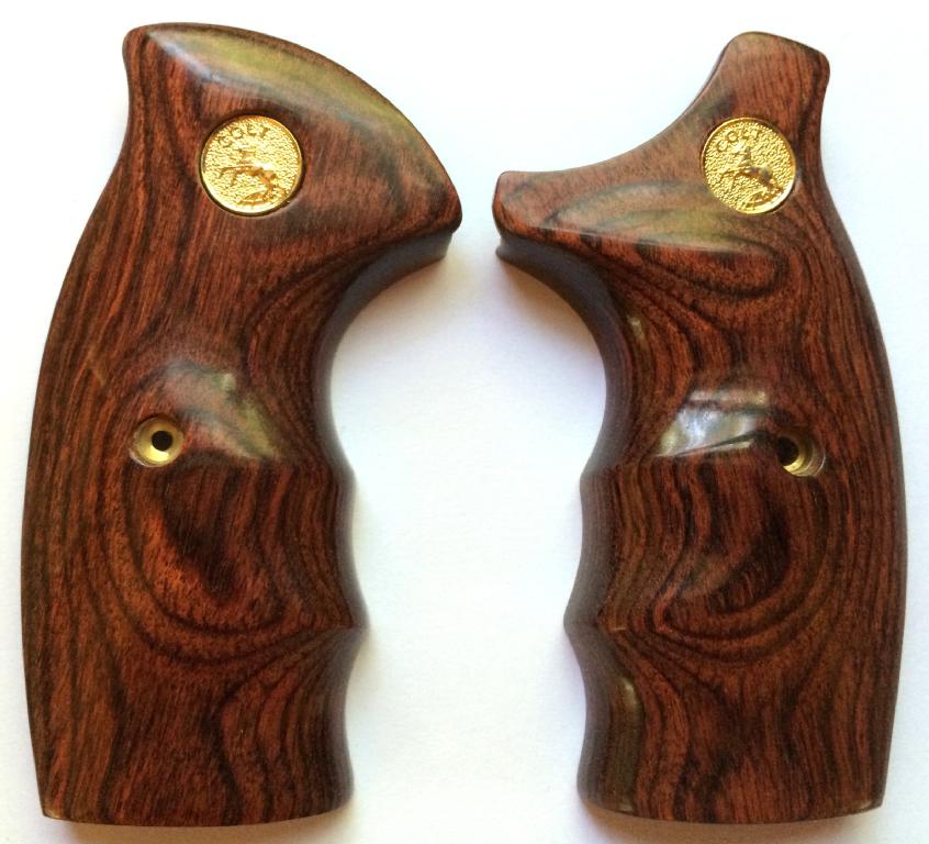 Colt D Frame Rosewood.With gold colt medallions.Held together on the inside with two stock pins.Screw included.