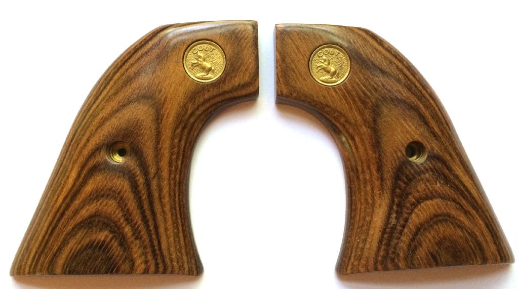 Colt Single Action Army.Fits 2nd and 3rd Generation.Walnut.With Gold Colt Medallions.Screw included.Fitting will be required.Instructions included.