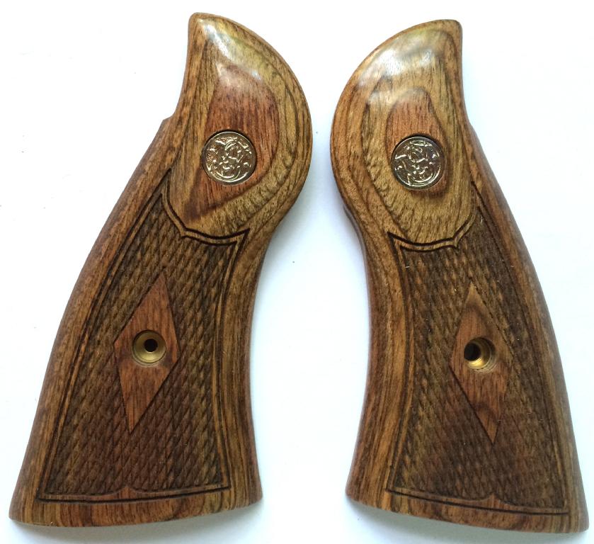 S&W N Sq Panel Grips.Walnut Checkered.With S&W Medallions.Screw Included.