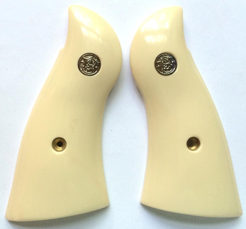 S&W N Sq Panel Grips.Bonded Ivory.With S&W Medallions.Screw Included.