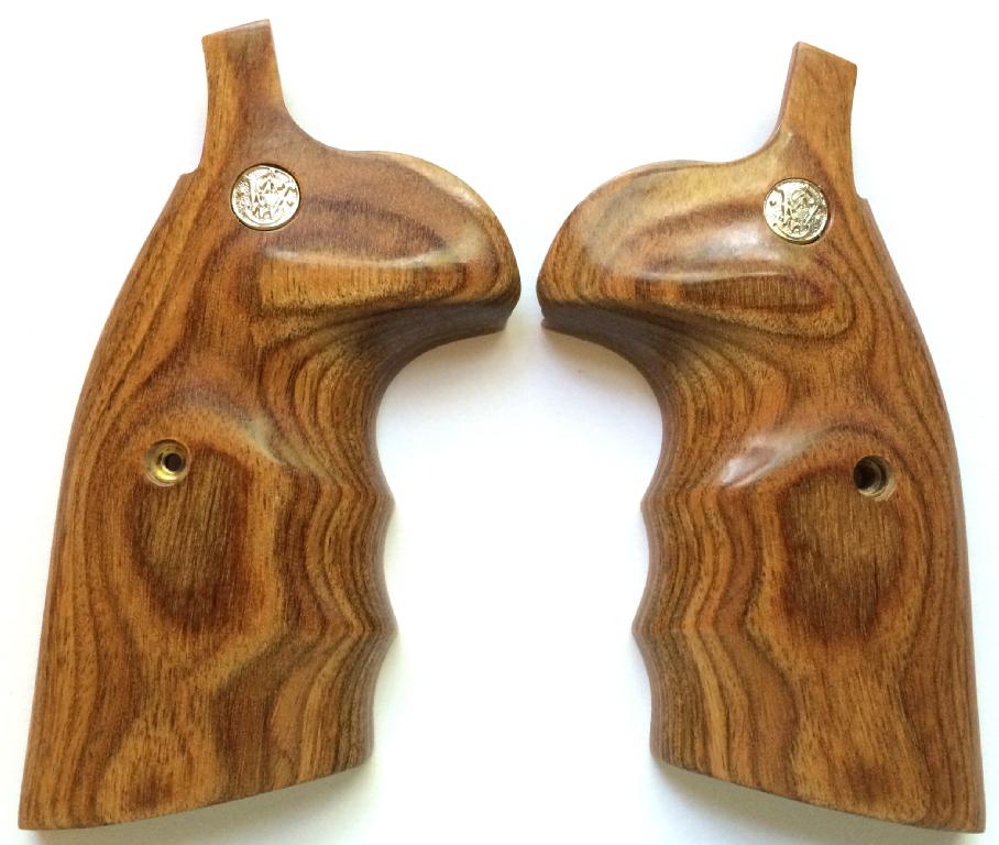 S&W K/L Frame Square Butt.Walnut.With S&W Medallions.Oversized with finger grooves.With comfort fit to the hand.Held together on the inside with two stock pins, for a tight and secure fit.Open Back-Strap.Screw Included.