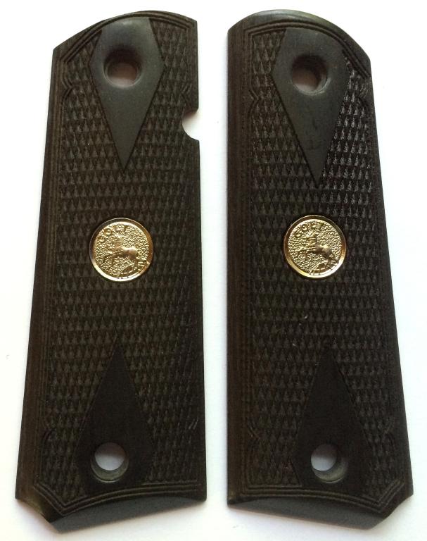 Colt 1911 Silverblack.Cut Checkered with Border.Silver Colt Medallions.
