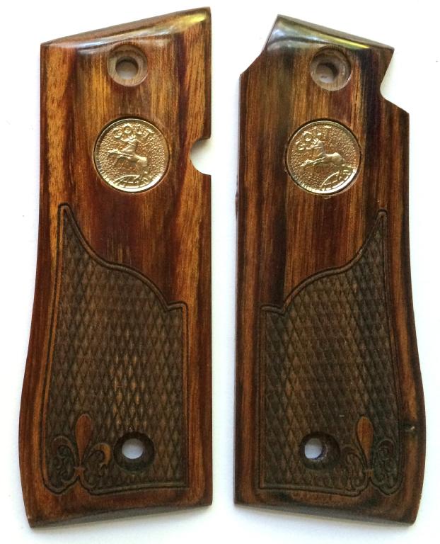 Colt 380 Gov't Mustang II.Walnut Checkered.Silver Colt Medallions.Seven Round Capacity.