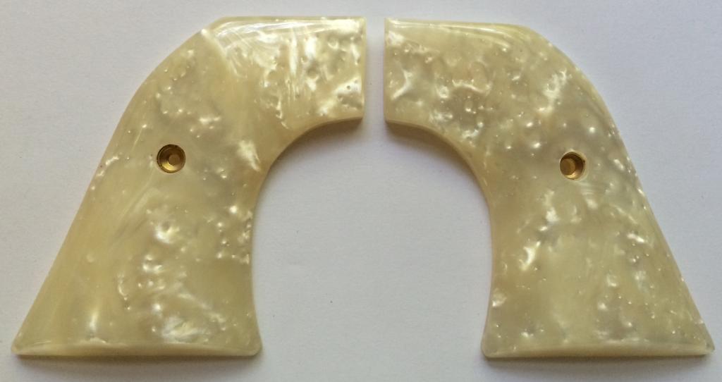Ruger Blackhawk, Single Six, Old Army Grips.Imitation White Pearl.If you would like Ruger Medallions added, please check box, upon check-out.Please Note:Overtigtening of the screw on these grips, may cause them to break or crack, if this happens no warranty is given.