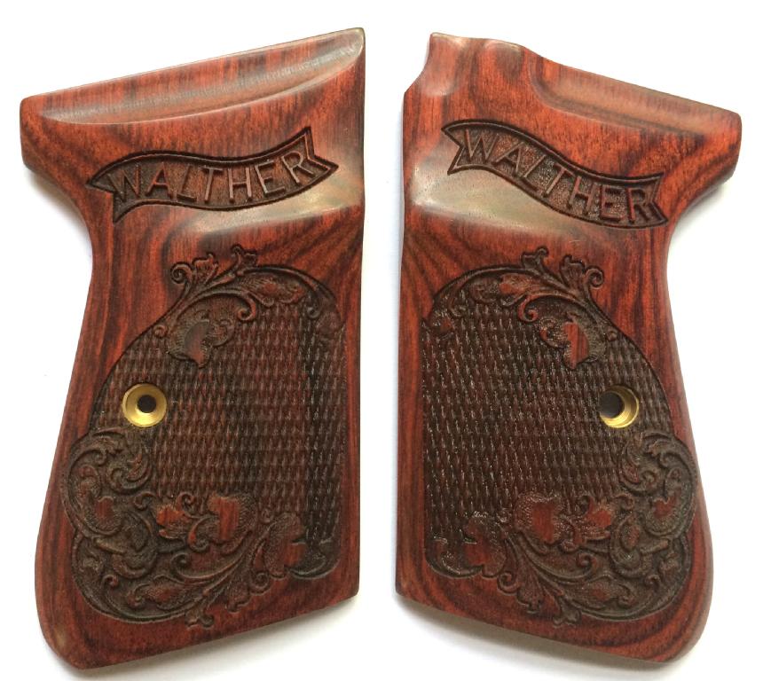 Walther PPKS / PP Grips.Rosewood.With Walther Banner.Checkered and Scroll Design