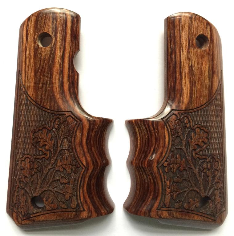 1911 Finger Groove Grips.Walnut Dymondwood.Cut Checkered with Oakleaf Design.