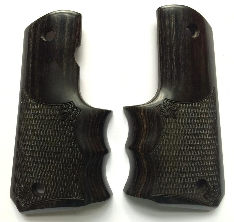 1911 Finger Groove Grips.Silverblack Dymondwood.Cut Checkered with Fleur-de-Lys in corner.