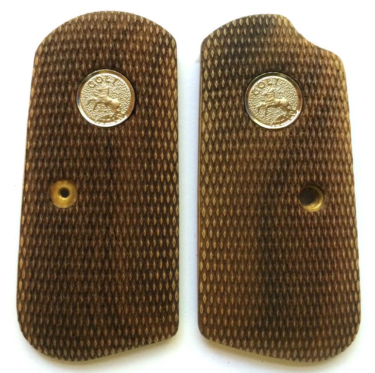 Colt 1903 / 1908 Grips.Walnut Cut Checkered.Silver Colt Medallions.Screw Included.