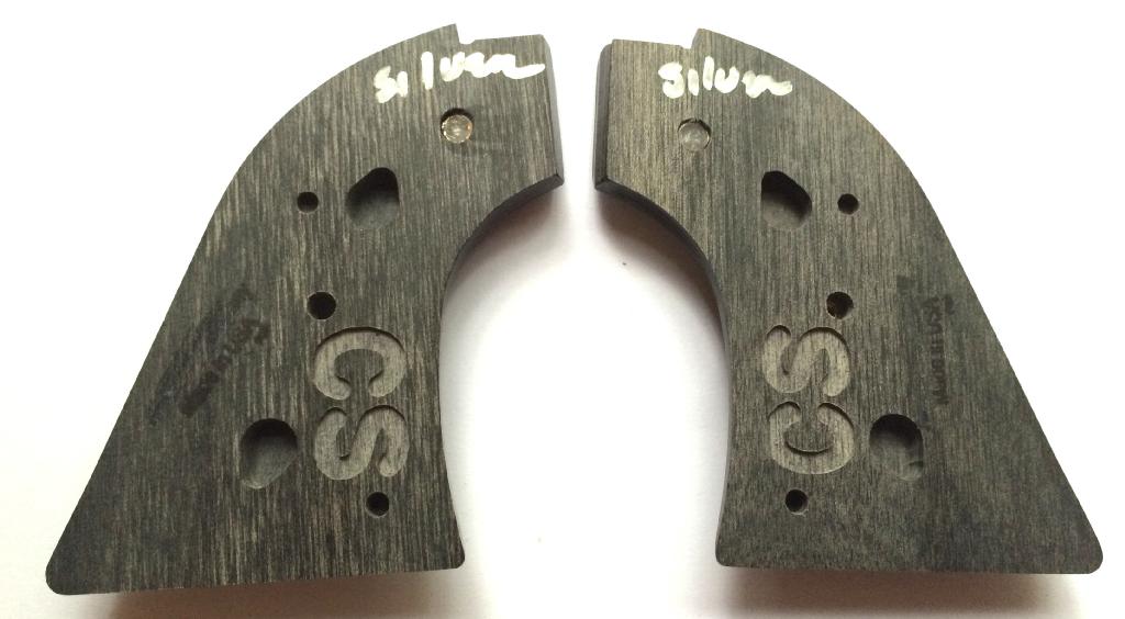 Colt Frontier / Scout Grips.Silverblack Dymondwood.With silver colt medallions.Screw included.The silverblack really enhances the finish on stainless and nickel.