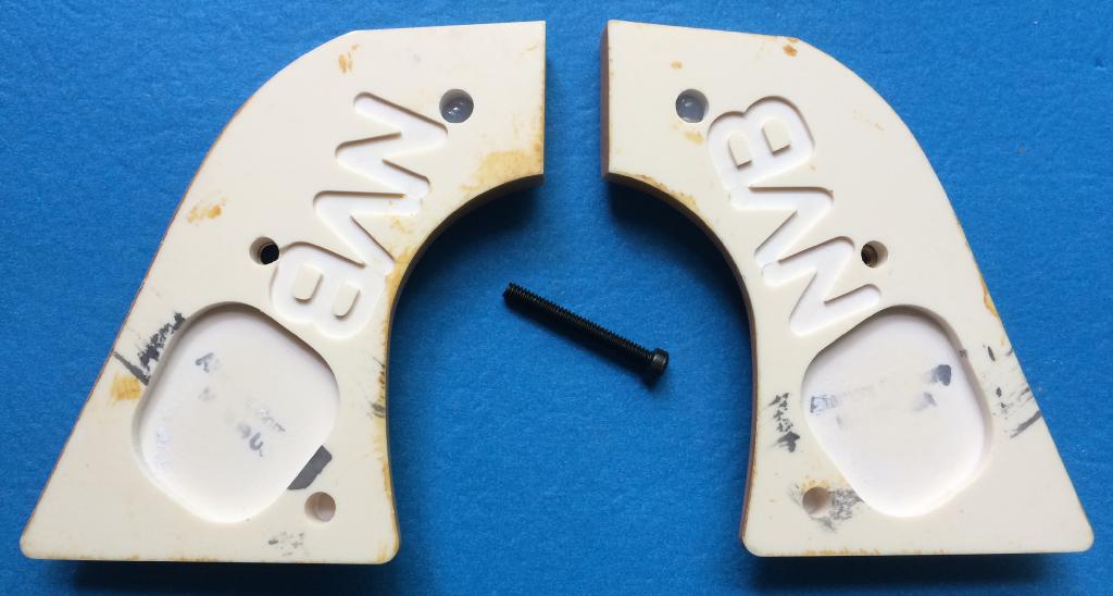 Ruger New Vaquero / Montado Grips.Imitation Aged Bonded Ivory.With Star Medallions.Please Note:Overtigtening of the screw on these grips, may cause them to break or crack, if this happens no warranty is given.