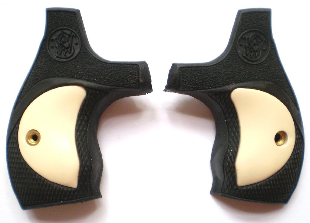 S&W J Round Rubber Boot with Bonded Ivory Inserts and S&W Logo.Open back-strap and bottom of frame.Screw included.
