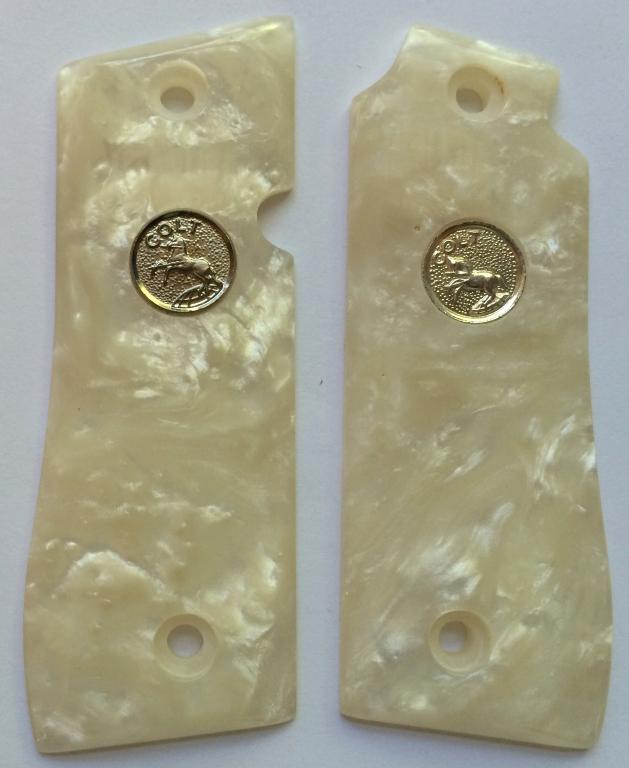 Colt 380 Gov't Mustang II.Imitation White Pearl.Silver Colt Medallions.Seven Round Capacity.