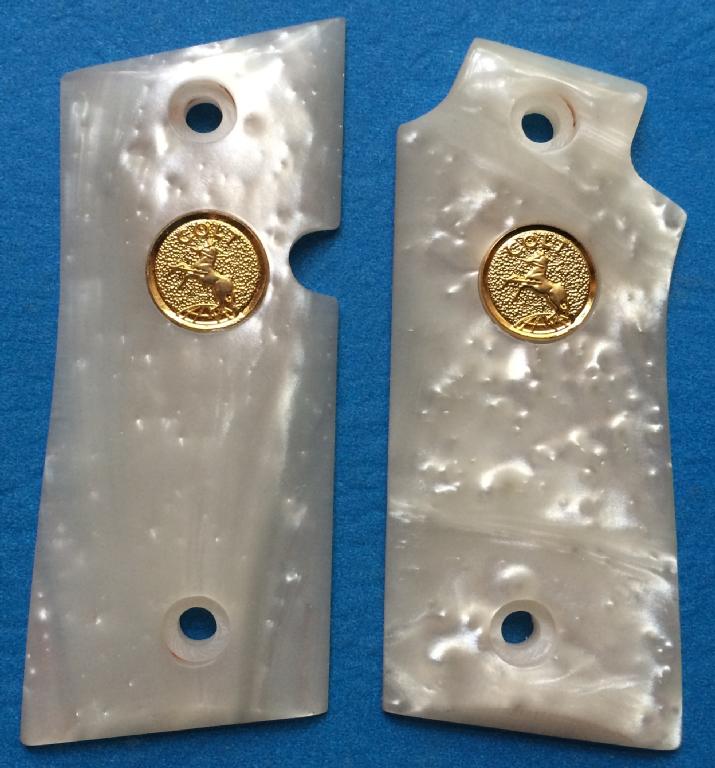 Colt 380 Mustang.Imitation White Pearl.Gold Colt Medallions.5/6 Round Capacity.