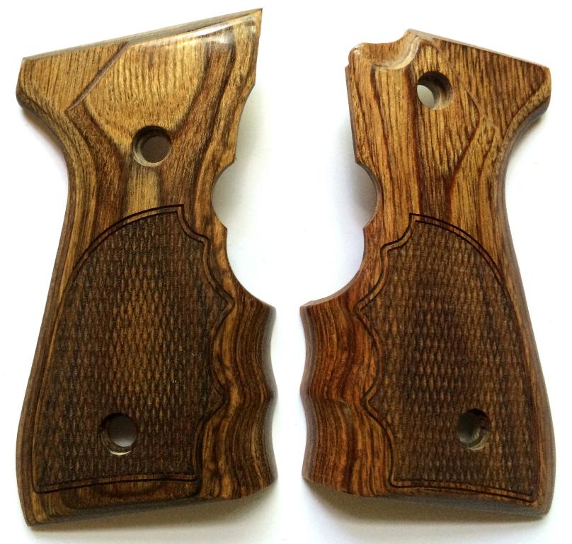 Beretta 92/96 Walnut Grips.Cut Checkered Finger Groove Grips.With Finger Grooves, wraps around front of frame, back-strap open.For comfort fit to the hand and excellent control.